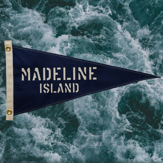 Madeline Island - First Edition, Hand-Stenciled Pennant - Navy
