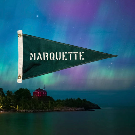 Marquette - First Edition, Hand-Stenciled Pennant - Boreal Green