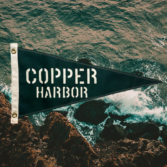 Copper Harbor- First Edition, Hand-Stenciled Pennant - Boreal Green